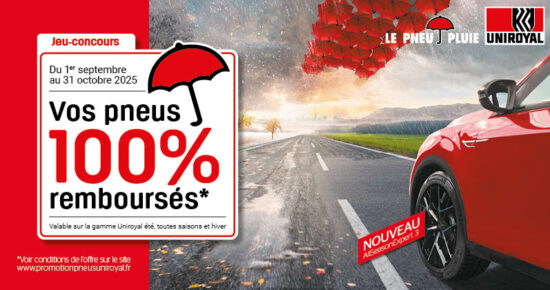 Du 1er septembre au 31 octobre 2025, profitez du jeu-concours de la marque Uniroyal ! Bénéficiez de vos pneus 100% remboursés* valable […]